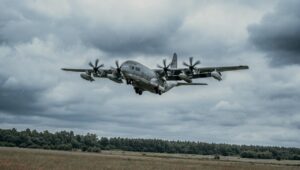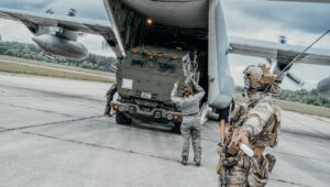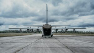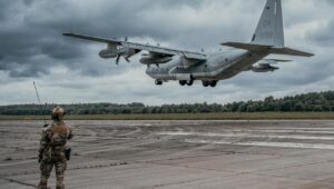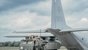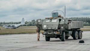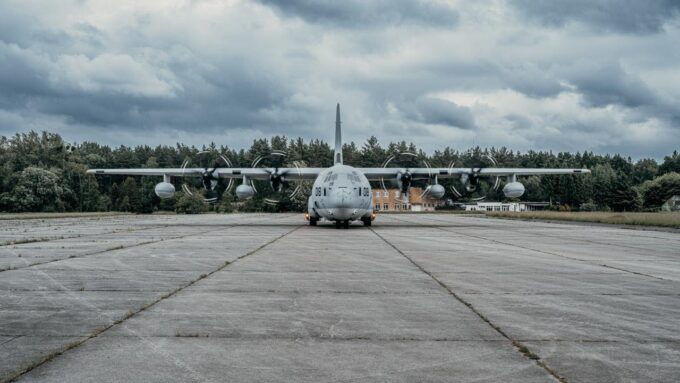 Ventspilī “BALTOPS” ietvaros C-130 lidmašīna nogādāja HIMARS sistēmu, kas veic trieciena simulāciju.