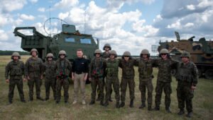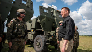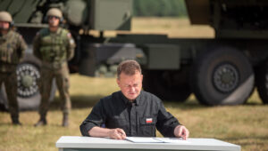 Od dziś mamy Brygadę Wojsk Rakietowych, która jest w dwóch lokalizacjach – tu w Toruniu oraz w Orzyszu.(…) Żeby szkolić kolejnych artylerzystów powołaliśmy dziś Akademię HIMARS – na wzór Akademii Abrams. (…) Jestem też spokojny, że razem z naszymi partnerami amerykańskimi wyszkolimy kolejne załogi HIMARS-ów tak żeby zarówno te które już są w naszym kraju – te HIMARS-y – jak i te które trafią na wyposażenie Wojska Polskiego były obsługiwane przez żołnierzy wyszkolonych na najwyższym poziomie – zaznaczył minister Mariusz Błaszczak.