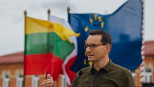 W związku z prowokacjami na naszej wschodniej granicy i eskalowaniem napięcia w tym regionie premier Mateusz Morawiecki spotkał się z prezydentem Litwy Gitanasem Nausėdą. W koszarach 14. Suwalskiego Pułku Przeciwpancernego im. Józefa Piłsudskiego, na terenie przesmyku suwalskiego politycy omówili bezpieczeństwo i ochronę granic naszych krajów oraz reakcje na wszelkie prowokacje. Spotkanie polityków w tak strategicznym miejscu jak przesmyk suwalski, ma na celu przekazanie jasnego sygnału, że nasze kraje mają wspólne stanowisko w odniesieniu do zagrożeń hybrydowych.
