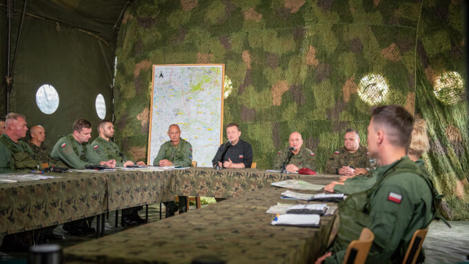 Minister Mariusz Błaszczak zaznaczył, że społeczeństwo musi mieć świadomość, że prowokacje i ataki hybrydowe będą następowały. Z całą pewnością musimy się liczyć z prowokacjami, szczególnie w roku wyborczym, przed wyborami. (…) Nie uda się reżimowi wschodniemu zdestabilizować Polski. (…) Cieszę się, że tak doświadczeni piloci są z nami oraz z tego, że sprzęt i załogi 1. Brygady Lotnictwa Wojsk Lądowych i 25. Brygady Kawalerii Powietrznej są tu na wschodzie. To było moje polecenie, żeby wzmocnić obecność wojskową na granicy. Władze polskie, polski rząd robi bardzo wiele, żeby zapewnić bezpieczeństwo, stąd też m. in. to wsparcie Straży Granicznej przez wojsko. Ale prowokacje pokazują, że konieczne jest jeszcze większe wzmocnienie obecności wojskowej, tak żeby odstraszyć agresora i nie dopuścić do tego, żeby prowokacje udawały się stronie przeciwnej – mówił szef MON.