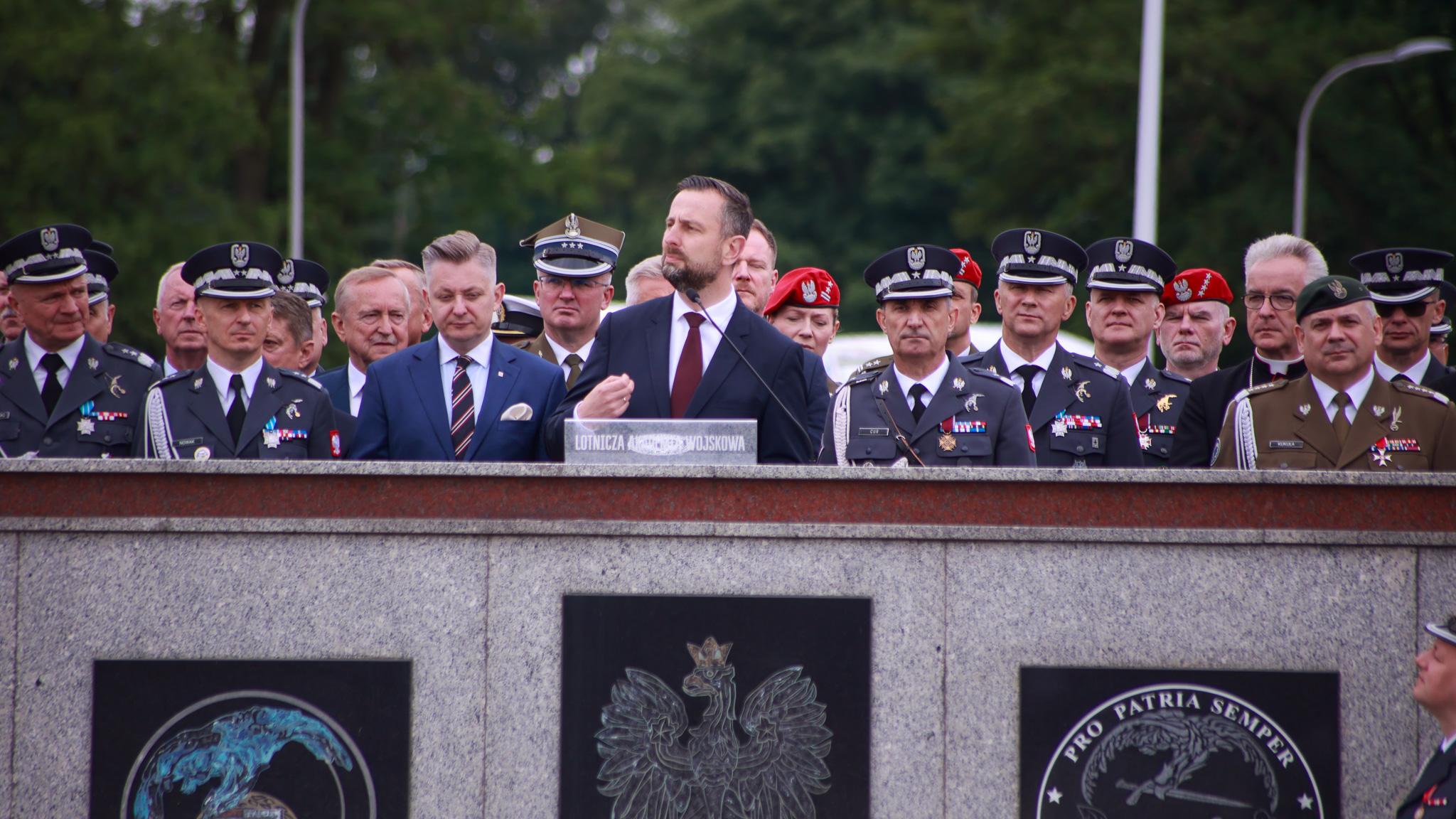 Myślę, że jak wielu Polaków z dumą patrzymy na Lotniczą Akademię Wojskową, ale gdzieś w sercu zawsze Szkoła Orląt bije najmocniej. To jest nasza tradycja, to jesteśmy my, to są pokolenia, to są tysiące rodzin w Polsce, które z tym miejscem się związały przez edukację, doświadczenie, szkolenie a później przez służbę Rzeczypospolitej. Orlęta zawsze służyły Rzeczypospolitej i Polska minionym pokoleniom jest wdzięczna i dumna. (…) Jesteście tutaj, żeby budować przyszłość. Jesteście po to, żeby być jeszcze lepsi niż wasi poprzednicy. Tacy będziecie. Jestem o tym święcie przekonany, bo znam was. Znamy was bardzo dobrze. W stalowym mundurze jest coś magicznego, jest coś niezwykłego. Jesteście strażnikami naszego bezpieczeństwa, ochrony przestrzeni powietrznej Rzeczypospolitej, która tak często niestety jest teraz naruszana i atakowana. Prowokacje nad Bałtykiem, to wszystko co robi Federacja Rosyjska, co robi Białoruś. My jesteśmy państwem pokoju, chcemy pokoju, ale pokój wymaga najlepszych sił powietrznych, żeby się obronić, najlepszej armii i siły społeczeństwa. Po to tu jesteście. Wiem, że jesteście gotowi tak jak składacie przysięgę na wszystko dla ojczyzny. Jesteście gotowi oddać życie, poświęcać swój czas, energię, umiejętności – mówił podczas obchodów wicepremier zwracając się do żołnierzy, pilotów i kadry LAW.