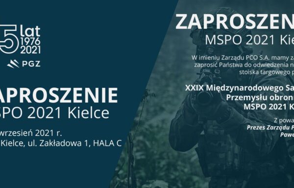 W dniach 7-10 września 2021 podczas Międzynarodowego Salonu Przemysłu Obronnego w Kielcach, PCO z Warszawy wystawi swoje produkty w ramach ekspozycji Polskiej Grupy Zbrojeniowej.