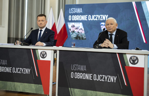 Minister obrony narodowej Mariusz Błaszczak i wicepremier, przewodniczący Komitetu ds. Bezpieczeństwa Narodowego i Spraw Obronnych Jarosław Kaczyński zaprezentowali szczegóły projektu nowej ustawy o Obronie…