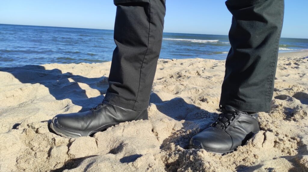 Żeby jednak sprawdzić, jak sprawują w warunkach prawdziwej wilgotności, znalazłem nieco większą kałużę na północy Polski, w miejscowości Jastrzębia Góra 🙂 trzeba było wejść na rozsądną głębokość w stronę fal. Niestety skończyło się to potrzebą wykonania jednej z czynności, której nie jestem fanem, aż moje Dziecię stwierdziło: Tato, jednak biegasz… Pochodziłem też kilka dni po piasku na plaży, miłe spacerki w tych butach.