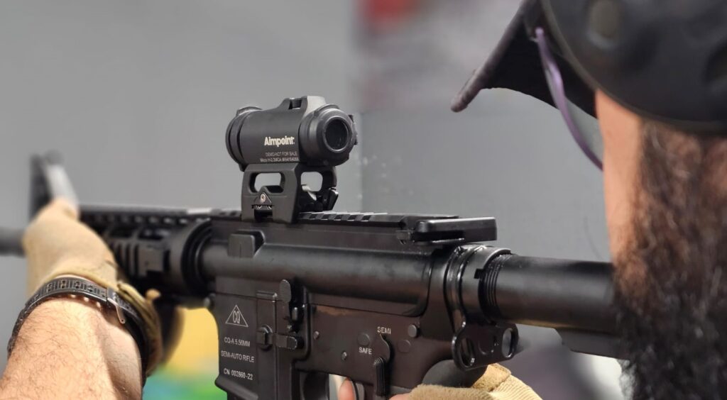 Początkowo celowniki były używane przez myśliwych i strzelców sportowych, ale w roku 1991 wojsko oraz policja zaczęły dostrzegać potencjał takiego rozwiązania. Amerykański generał Herbert Norman Schwarzkopf Jr. odwiedził saudyjskie miasto Rijad. Towarzyszył mu mały zespół sił specjalnych. Panowie wyposażyli swoje karabiny w celowniki Aimpoint 5000, pierwotnie przeznaczone na rynek cywilny. Zdjęcie przedstawiająca Panów z bronią, z celownikami Aimpoint na karabinach poszło w świat, a zainteresowanie wojska celownikami kolimatorowymi eksplodowało.