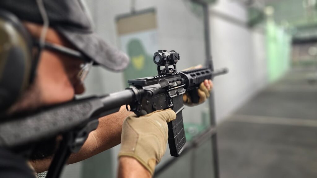 Jako że posiadam karabinek z odpowiednią szyną, to zamontowałem kolimator i udałem się na strzelnicę. Trzeba przyznać, że optyka wraz z montażem Recknagel ERA TAC prezentuje się na broni bardzo profesjonalnie.