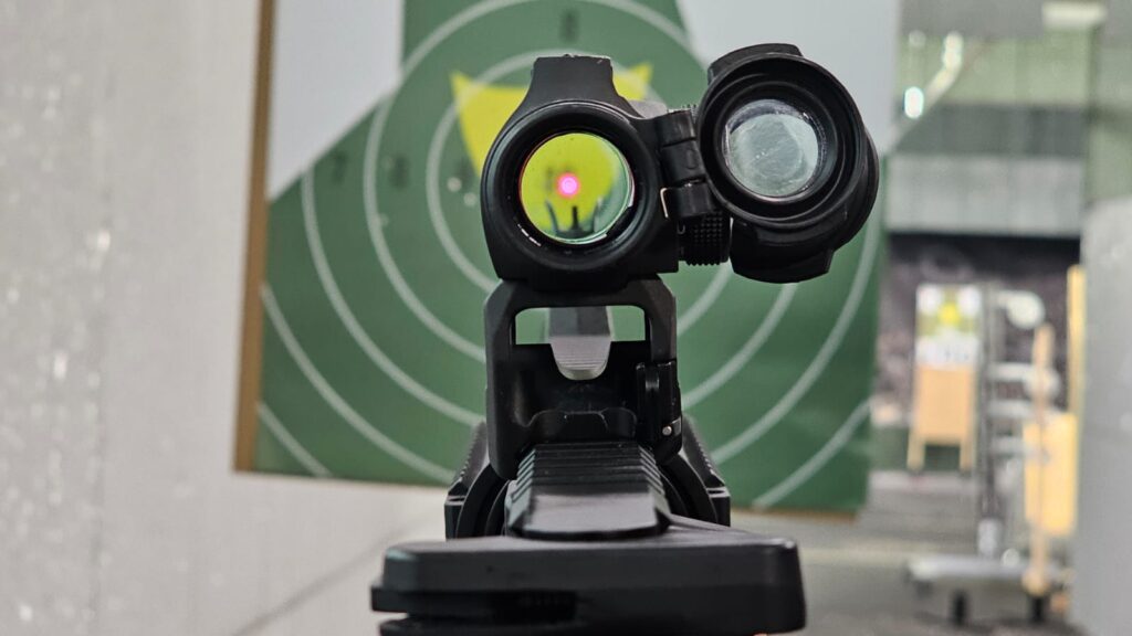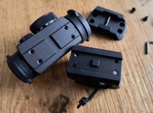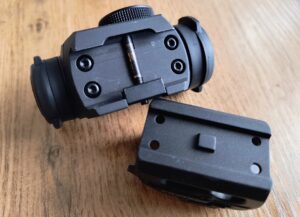 Po otwarciu kropka jest ostra i dobrze widoczna. Sam kolimator też fajnie się prezentuje. Podczas otwierania i zamykania klapki chodzą z wyraźnym oporem, po czym można wnosić, że będą dobrze uszczelniać wnętrze optyki.