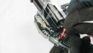 Po załadowaniu podajnika amunicyjnego AR-15 Speed Loader nabojami należy podpiąć magazynek do gniazda znajdującego się po lewej stronie urządzenia. Teraz czas na nieco pracy fizycznej. Samo napełnianie wymaga ruchu popychacza, umieszczonego z boku naprzeciwko magazynka. Jedno naciśnięcie powoduje załadowanie pięciu sztuk amunicji.