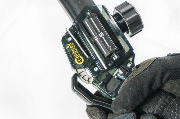Dopasowanie ładowarki do magazynka odbywa się dwuetapowo: najpierw trzeba ustawić rolki umieszczone z boku, a następnie dokręcić pokrętło. Dobór ustawienia jest prosty i intuicyjny. Warto jednak wspomnieć, że ze względu na specyficzną konstrukcję magazynki do pistoletu Beretta 92/M9 wymagają ustawienia prawej rolki w pozycji 3 i lewej w pozycji 5. Producent poszedł krok do przodu i umieścił na rolkach dodatkowe oznaczenie dla użytkowników tych pistoletów.