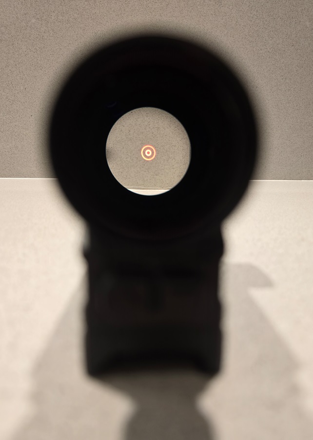 Mamy tu do czynienia ze stałą siatką celowniczą DRT (Dual Ring Tactical) ze zmiennym, dwunastopoziomowym podświetleniem w kolorze zielonym lub czerwonym. Zasilanie stanowi bardzo popularna i dostępna praktycznie wszędzie pojedyncza bateria AAA, dająca do 3 000 godzin pracy na najniższym ustawieniu. Samo podświetlenie do celowania nie jest jednak konieczne, gdyż mamy tu stały punkt celowania w postaci czarnego okręgu z kropką.