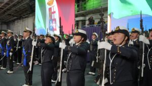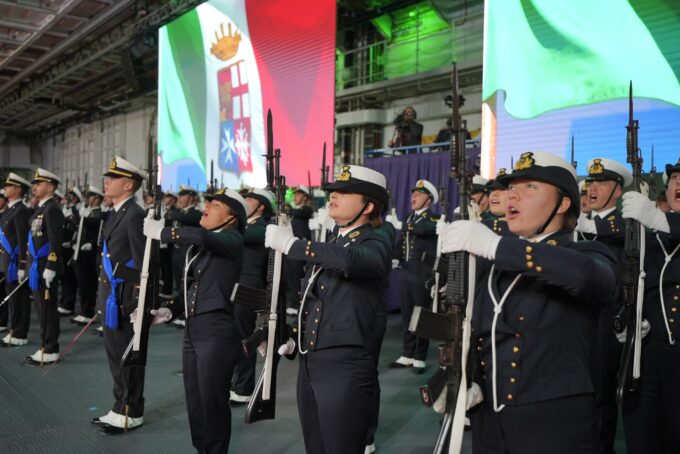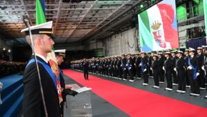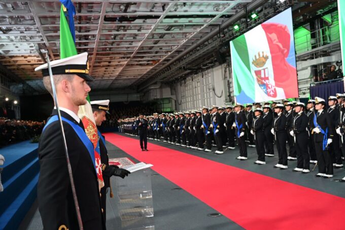 Dzisiaj z dumą doświadczamy wielkich emocji związanych z włączeniem Trieste do floty, największego okrętu wojennego zbudowanego we Włoszech od drugiej wojny światowej, i postanowiliśmy przypieczętować ten historyczny moment uroczystą przysięgą podchorążych, z których wielu na tym okręcie będzie rozwijać się zawodowo, realizować swoje ambicje, wykonywać misje o znaczeniu strategicznym dla interesu narodowego.