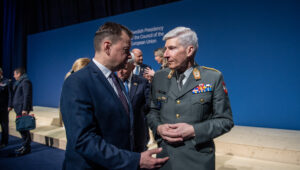 Szef MON wziął również udział w sesji z udziałem sekretarza generalnego NATO Jensa Stoltenberga i zastępcy sekretarza generalnego ONZ ds. operacji pokojowych Jean-Pierre Lacroix. Druga sesja dotyczyła zagrożeń o wymiarze globalnym. Są one związane z aktywnością Rosji. Ja postawiłem tezę, że w sytuacji, w której doszłoby do nierozstrzygnięcia konfliktu poprzez zwycięstwo Ukrainy będziemy mieli do czynienia z zamrożeniem konfliktu. A więc z groźbą ponownego ataku Rosji na Ukrainę, czy też na inne państwa. To będzie też będzie negatywnie wpływało na agresywną postawę Rosji w innych częściach świata. Założenie postawiłem takie, że należy wspierać Ukrainę, żeby doprowadzić do jej zwycięstwa, w przeciwnym razie tylko Rosja będzie zachęcona do tego, żeby uderzyć ponownie – powiedział wicepremier Mariusz Błaszczak.