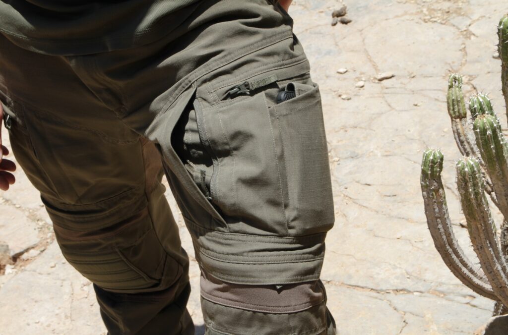Kieszenie udowe, które z założenia przeznaczone są na magazynki czy inny podobny sprzęt świetnie pomieszczą telefon/aparat fotograficzny, latarkę, multitool i drobne narzędzia pomiarowe czy zwinięty przewód kamery endoskopowej.