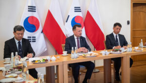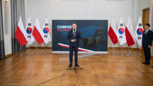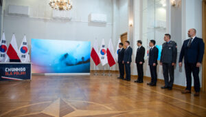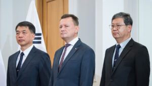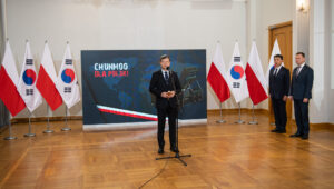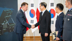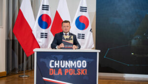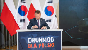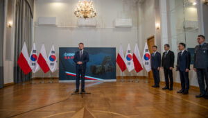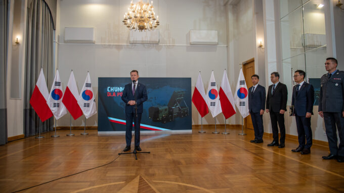 Chciałbym podziękować za bardzo owocną współpracę pomiędzy Polską a Koreą Południową w dziedzinie obronności. Analiza wojny na Ukrainie wskazuje, jak duże znaczenie, jaką dużą wagę ma artyleria. Stąd też podjęliśmy decyzję o wzmocnieniu polskiej artylerii, szczególnie artylerii rakietowej – powiedział wicepremier Mariusz Błaszczak podczas zatwierdzenia kolejnej umowy na południowokoreański sprzęt wojskowy.