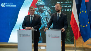 Spełniamy nasze obietnice. Dążymy do tego, żeby było 50% wydatków w polskim przemyśle i 50% u naszych sojuszników, kontrahentów zagranicznych. To jest trudne wyzwanie, ono jest bardzo ambitne. Ale po to jest ambitne, żebyśmy dążyli do wielkiej Polski, do wielkiego rozwoju, do wzrostu gospodarczego. Inwestujemy w polski przemysł zbrojeniowy. W najbliższych dniach znów spotkamy się w dużej polskiej firmie zbrojeniowej i będzie kolejny kontrakt. To jest naprawdę dla nas absolutny priorytet. Dwie rzeczy, które składają się na znak zwycięstwa. Bezpieczeństwo i gospodarka. To jest absolutny priorytet dla rządu. Jednej nie ma bez drugiej, jedna wynika z drugiej. To są wartości dla obywateli niezwykle ważne – podkreślił szef MON.