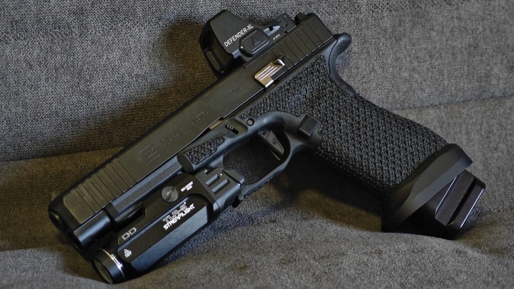 Tak jak w wypadku „mniejszego brata” (Defender ST) zdecydowano się na wykorzystanie footprintu w standardzie DeltaPoint Pro (DPP). Zapewne, tak jak ja swego czasu, zastanawiacie się – dlaczego nie najpopularniejszy RMR? Odpowiadając znanym cytatem Tadeusza Sznuka – nie wiem, choć się domyślam. Rozstaw otworów na śruby standardu RMR jest na tyle szeroki, że nie pozwala na bezpośredni frez na wielu popularnych konstrukcjach ze względu na zbyt wąski zamek, co nie występuje w przypadku DPP. No i pasuje do wiekszości Sig Sauerów bez płytki 😉 choć osobiście w tym wypadku z uwagi na brak wypustek ustalających w zamku miałbym obawy do takiego osadzenia.