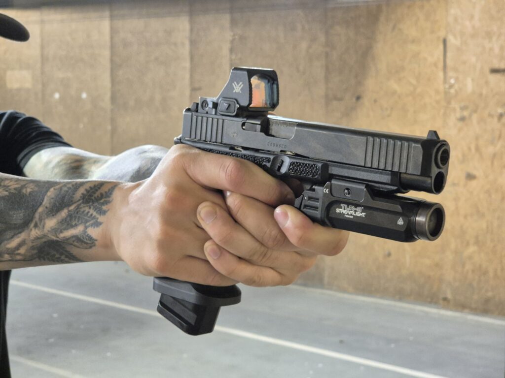 Mocno wystająca do przodu ramka zapewnia solidną ochronę soczewki a teksturowana przednia powierzchnia Fast-Rack pozwala pewnie i bez obaw przeładowywać pistolet przy użyciu kolimatora.