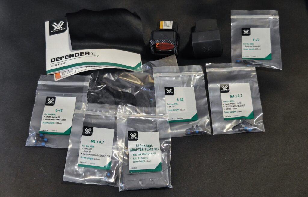 Pierwszą spośród miłych niespodzianek jest kompleksowe podejście firmy Vortex do tematu montażu kolimatora. Niejednokrotnie spotkałem się z problemem, gdy dostarczane przez producenta celownika śruby nie pasowały do pistoletu, na którym miał być osadzony, co często opóźniało moment, w którym użytkownik mógł się cieszyć nową zabawką. W tym wypadku raczej nam to nie grozi – w zestawie znajduje się aż pięć kompletów śrub montażowych: trzy z gwintami imperialnymi, dwa ze śrubami M4 różnej długości. Ponadto każdy z zestawów jest zdublowany (4 śruby w woreczku), a na opakowaniu wymieniono najpopularniejsze konstrukcje, do których jest przeznaczony.