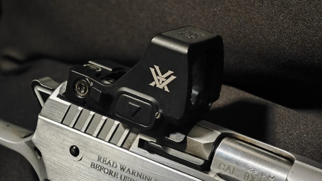 Niewielką, choć według mnie wartą wspomnienia wadą, jest umieszczenie przycisków do regulacji jasności. Z uwagi na fakt, że są one najbardziej wysuniętymi punktami z boku kolimatora, często ulegają one wciśnięciu gdy pistolet leży płasko. Może to powodować przypadkowe włączenie kolimatora podczas przechowywania lub wyłączenie kolimatora bądź zmianę jasności w wypadku startu przebiegu z bronią na stoliku, gdy użytkownik zapomni zablokować ustawień.