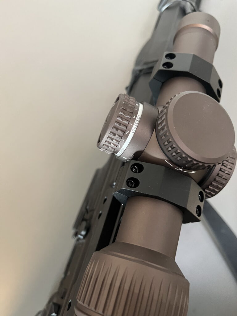 Regulacje w Razorze są cztery: położenia krzyża, natężenie kropki, o której już pisałem, oraz powiększenia i dioptri. Położenie krzyża można regulować w zakresie 150MOA/43 MRAD zarówno w pionie jak w poziomie. Jedno kliknięcie odpowiada przesunięciu o 0.5 MOA/0.22 MRAD. Kliknięcia są wyraźnie wyczuwalne i głośne. Jak już wspomniałem, wieżyczki wyposażono w nakrętki, co jest dużym plusem w przypadku optyki montowanej na broni bojowej, podatnej na uderzenia czy niezbyt delikatne traktowanie. Dzięki temu wieżyczka nie poruszy się przy przypadkowym kontakcie, co zapobiegnie przypadkowej utracie zera.