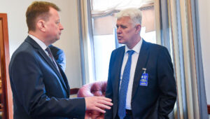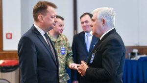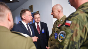 Szef MON mówiąc o wsparciu jakiego Polska udziela żołnierzom z Ukrainy zaznaczył, że środowisko międzynarodowe zauważa i bardzo docenia szkolenia, które prowadzone są w Polsce. Rozmawialiśmy także o szkoleniach dla żołnierzy ukraińskich. Polska należy do tych państw, które szkolą żołnierzy z Ukrainy, m. in. w formacie unijnym. Usłyszałem bardzo dobre oceny dotychczas podjętych działań przez nasz kraj, z czego jestem dumny. Dziękuję wszystkim tym, którzy szkolą żołnierzy ukraińskich – dodał wicepremier.