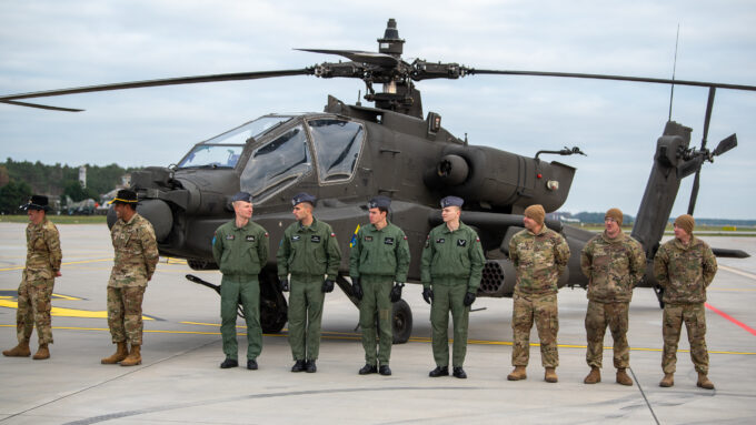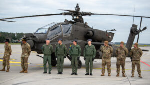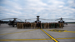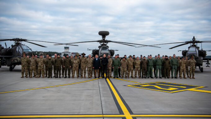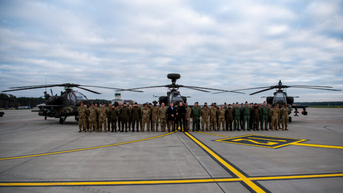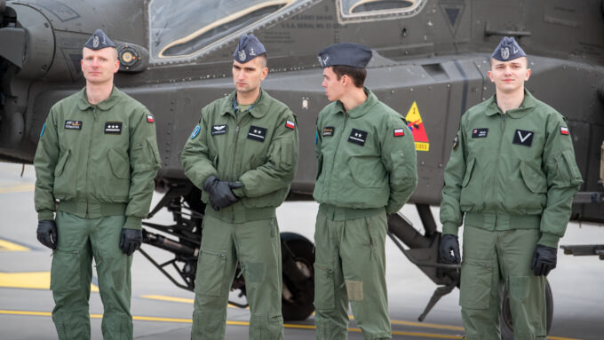 Szef MON podczas wizyty w Powidzu zaznaczył, że kontynuowane są rozmowy ze stroną amerykańską w sprawie zamówienia dla Wojska Polskiego śmigłowców uderzeniowych (Polska planuje zakup 96 śmigłowców szturmowych AH-64E Apache Guardian).