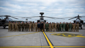 To spotkanie, którego rezultatem jest zainicjowanie kolejnej inwestycji, tu w bazie w Powidzu, tym razem przeznaczonej dla Sił Powietrznych Stanów Zjednoczonych. Stacjonuje tu brygada lotnictwa bojowego USA wyposażona w śmigłowce Apache. Dla tych śmigłowców w ciągu następnych lat przygotujemy bazę w postaci z jednej strony hangarów i magazynów, z drugiej, w postaci bazy paliwowej, tak, żeby mogły stąd operować wspierając siły polskie i sojusznicze – poinformował Mariusz Błaszczak, wicepremier-minister obrony narodowej podczas wizyty w Powidzu (Magazyny środków bojowych dla wojsk sojuszniczych w Powidzu).
