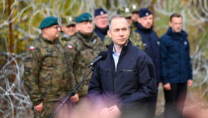 Wojsko Polskie cały czas wspiera służby podległe MSWiA w ochronie granicy państwa przed nielegalną migracją.- Bezpieczeństwo to jest to, co stanowi priorytet rządu pana premiera Donalda Tuska. Dwa ostatnie lata to właśnie niekończące się inwestycje, jeżeli chodzi o kwestie bezpieczeństwa. To proces wzmacniania naszych służb, proces lepszego wyposażenia zarówno Wojska, Policji, Straży Granicznej – tych służb, tych funkcjonariuszy i żołnierzy, którzy codziennie bronią naszego bezpieczeństwa. (…) Nie przez przypadek znajdujemy się tutaj, na granicy, aby powiedzieć, że nasza granica jest bezpieczna, nasza granica jest dobrze chroniona. Ostatnie dwa lata to okres wielkich inwestycji. Zastaliśmy tę granicę chronioną płotem. Teraz mamy prawdziwą zaporę, której skuteczność sięga 98 proc. Tylko w tym roku udaremniliśmy ponad 28 tys. prób nielegalnego przekroczenia granicy. Ta zapora spełnia swoje zadania, ale przecież uruchomiliśmy barierę elektroniczną, systemy optoelektroniczne. To łącznie blisko 3 miliardy złotych zainwestowane w naszą wschodnią granicę, żeby Polacy czuli się bezpiecznie – podkreślił szef MSWiA Marcin Kierwiński.