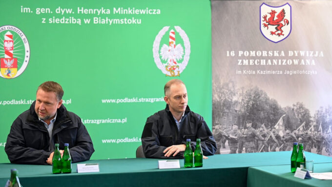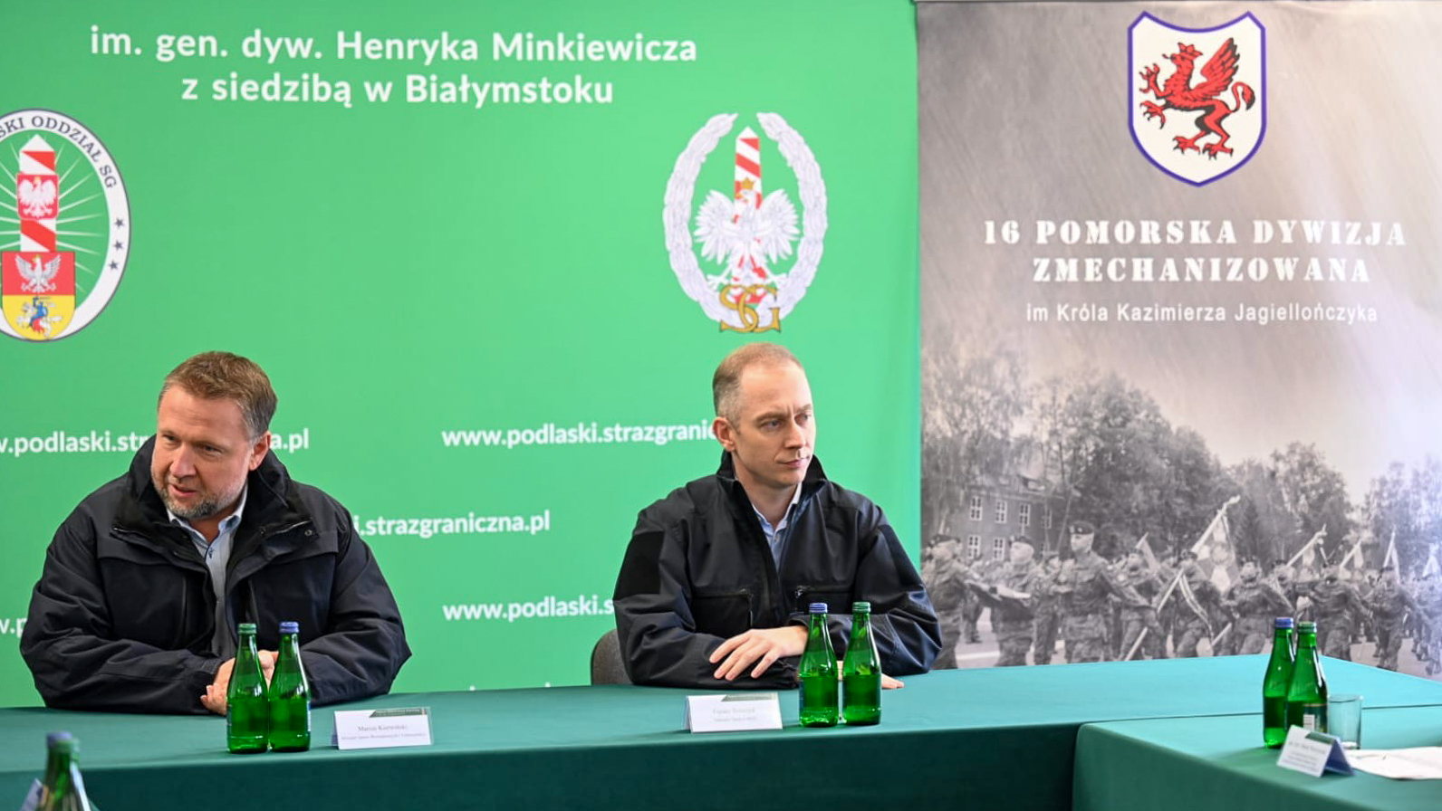 W środę, 15 października 2025, w Połowcach, przy granicy z Białorusią, odbyła się wspólna konferencja prasowa Ministra Spraw Wewnętrznych i Administracji (MSWiA) Marcina Kierwińskiego i sekretarza stanu w Ministerstwie Obrony Narodowej (MON) Cezarego Tomczyka.