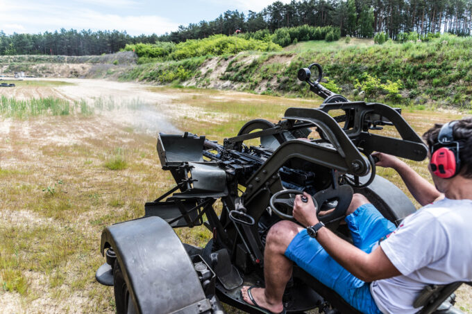 Dzięki uprzejmości House Of Guns można było wypróbować pistolety maszynowe (Ingram MAC 11, UZI, MP5, PPSZ 41), karabiny maszynowe (RPK, Ultimax 100, PKM, M53), strzelby samopowtarzalne (Saiga 12K) i granatnik rewolwerowy RGA-86. Panowie z Wrocławia poważnie podeszli do zagadnienia – w piękny, majowy poranek z lawety ściągnęli wielkokalibrowy, podwójnie sprzężony, przeciwlotniczy karabin maszynowy ZPU-2 kaliber 14,5 x 114 mm – oczywiście strzelający ogniem ciągłym. Mimo całego tego arsenału demolowanie sejfu trwało dwa dni.