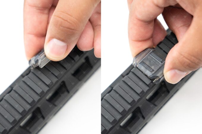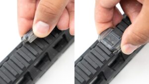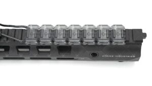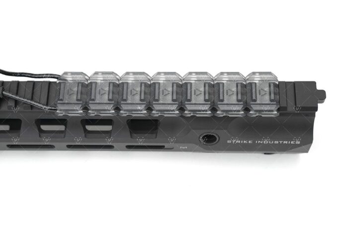 „Strike Multidirectional Picatinny Rail Cover with Cable Management” wykorzystuje zgłoszoną do opatentowania funkcję SI Cable Management System® (CMS), która umożliwia organizowanie i przechowywanie nadmiaru przewodów z latarki lub innych okablowanych akcesoriów, jednocześnie dodając pozytywne wrażenia dotykowe. Łączy w sobie dwie cechy, które zadowolą niejednego pedanta – porządek i wygodę. Wykonana z lekkiego i wytrzymałego materiału SI Poly Flex, dzieli się na pojedyncze ogniwa zajmujące po dwie sekcje szyny Picatinny, co czyni ją kompaktowym, niezwykle uniwersalnym oraz szybkim w montażu i demontażu akcesorium, chroniącym nasze dłonie, oraz poprawiającym estetykę i wygodę użytkowania broni.