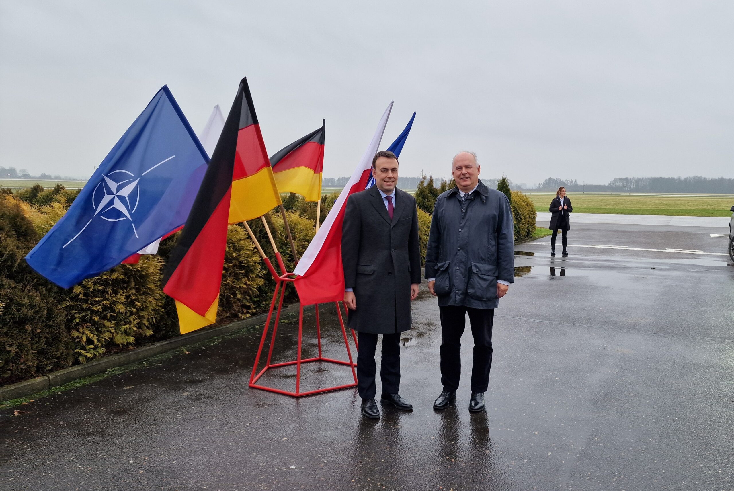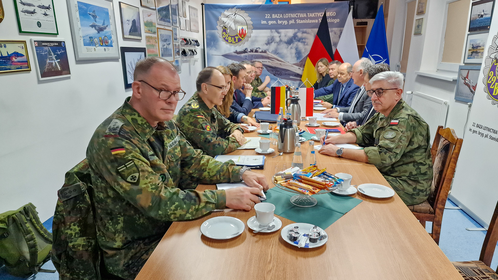 W środę, 10 grudnia 2025, w 22. Bazie Lotnictwa Taktycznego w Królewie Malborskim (22. BLT) sekretarz stanu w Ministerstwie Obrony Narodowej Paweł Zalewski spotkał się z parlamentarnym sekretarzem stanu w Federalnym Ministerstwie Obrony Niemiec Nilsem Schmidem.