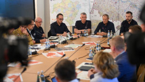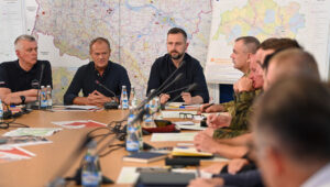 Dezinformacja – z tym mamy coraz więcej niestety do czynienia. Bardzo prosimy o zwracanie uwagi na wszystkie zbiórki, które pojawiają się w Internecie. Na informacje dotyczących zagrożenia stanów alarmowych. Proszę korzystać tylko z informacji rządowych, agencji rządowych, instytucji wojewódzkich, które są pewne, a nie ze źródeł, które nie są potwierdzone. Nie wykluczamy również działalności związanej z wojną hybrydową, która mogła wejść w tym momencie już w ten obszar i nasi adwersarze mogą już to wykorzystywać i siać dezinformację. Jedna z takich bardzo niebezpiecznych dezinformacji jest informacja o wysadzaniu wałów, choćby w okolicach Nysy. Nie ma żadnych działań prowadzonych przez saperów i nie ma żadnych planów wysadzania wałów. Jeżeli by coś takiego było to wojsko będzie komunikować takie rzeczy – zaznaczył.