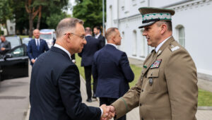 Chciałem, aby to spotkanie tutaj było, poprzez naszą obecność, wyrazem wspólnego i jednolitego wsparcia wszystkich najważniejszych przedstawicieli polskiej sceny politycznej dla obrony granicy Rzeczypospolitej, ale przede wszystkim dla obrońców tej granicy – zaznaczył Andrzej Duda.