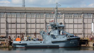 H-13 Przemko jeszcze w stoczni Remontowa Shipbuilding w trakcie przygotowań przed wyjściem do Świnoujścia.
