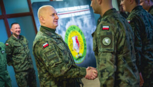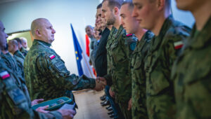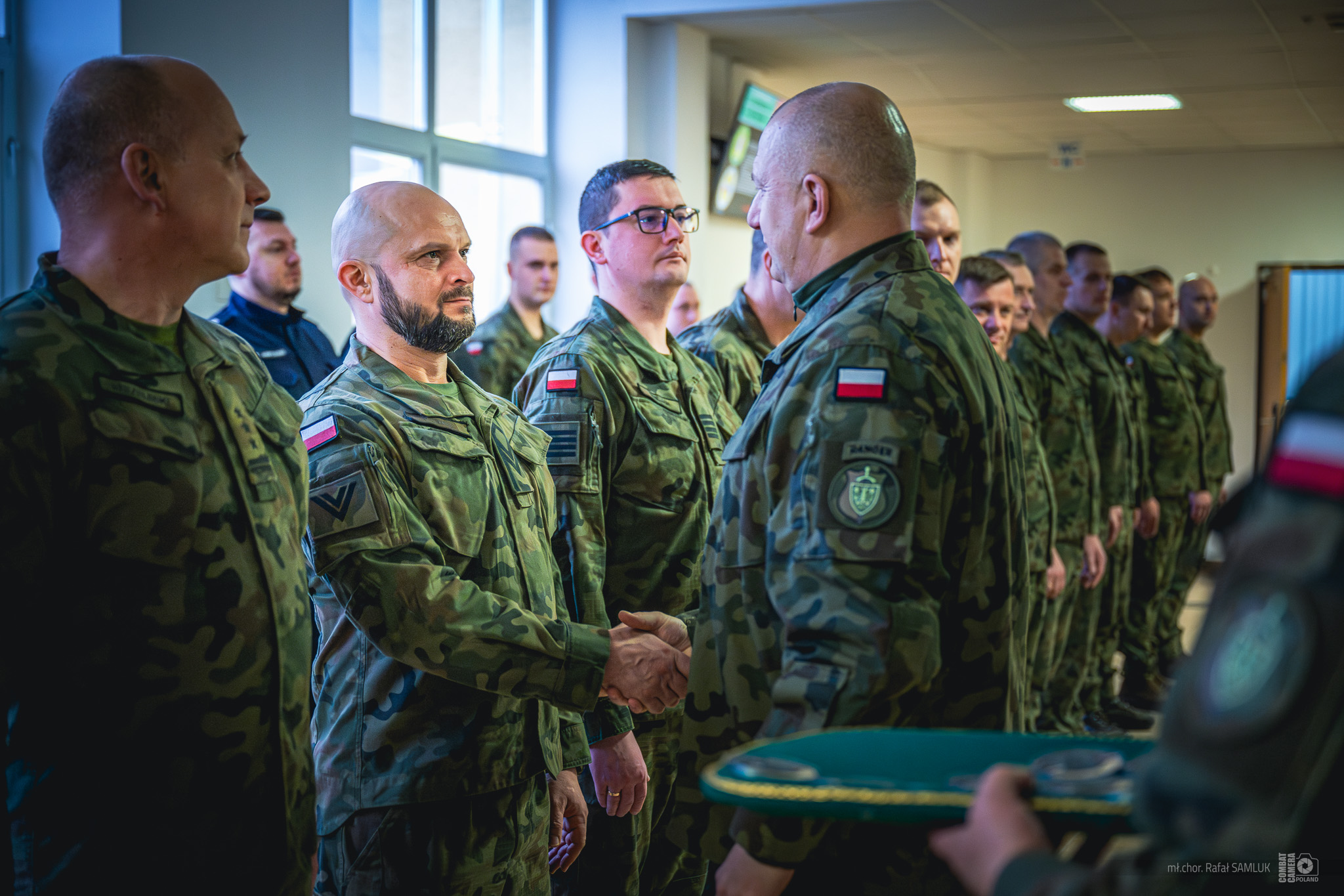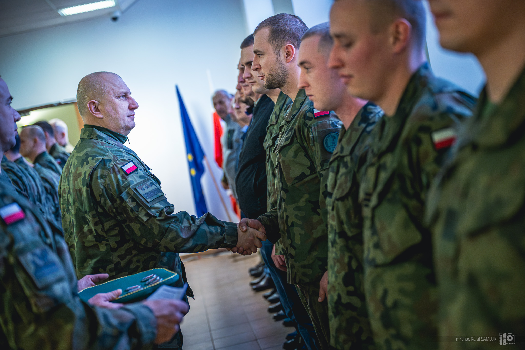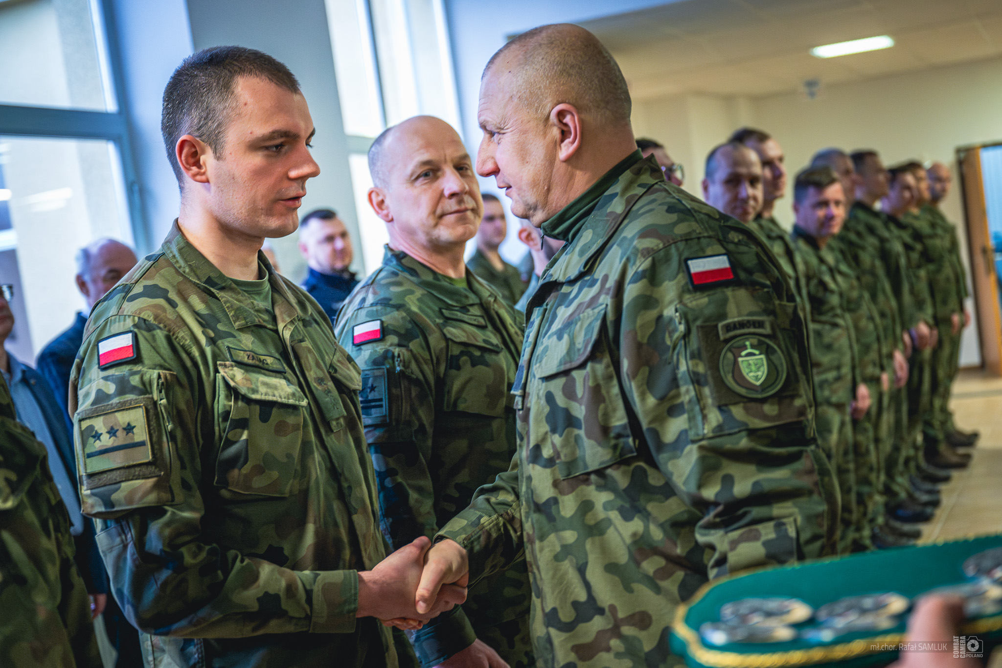 Podczas uroczystego podsumowania żołnierze szczególnie wyróżniający się w realizacji zadań otrzymali z rąk Dowódcy podziękowania oraz pamiątkowe coiny.