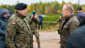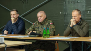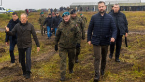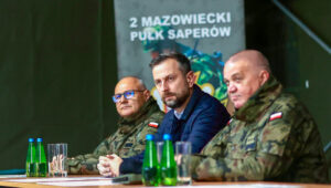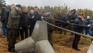 Narodowy Program Odstraszania i Obrony Tarcza Wschód to jest priorytet dla naszego rządu, dla naszej koalicji. Zresztą w umowie koalicyjnej pierwsze akapity są o tym, że bezpieczeństwo naszej Ojczyzny, obrona, budowanie wspólnoty, siła w sojuszach i zmodernizowana armia to jest dla nas cel zasadniczy. To jest nasza ziemia, to jest nasza Ojczyzna, będziemy bronić każdego skrawka, każdego centymetra Rzeczpospolitej. To jest nasze zadanie, to jest nasze zobowiązanie. Dzisiaj wspólnie z panem premierem, z panem ministrem Tomczykiem, z generałami, oficerami, a przede wszystkim z żołnierzami Wojska Polskiego jesteśmy w Orzyszu po to, żeby przetestować Tarcze Wschód w swoim praktycznym wymiarze. Fortyfikacje, jeże żelbetonowe, rowy przeciwczołgowe. To wszystko ma zadziałać na wschodniej granicy Polski, wschodniej granicy Unii Europejskiej i NATO – powiedział po spotkaniu z dowódcami szef MON.