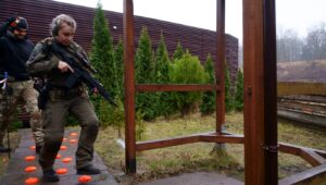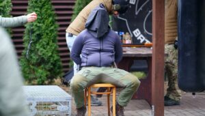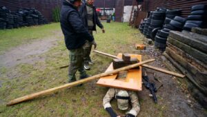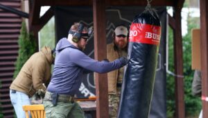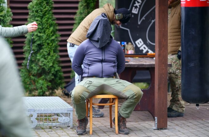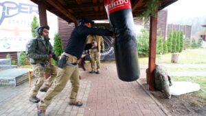 Miejscem startowym trzeciego toru było krzesło. Siedząć na nim, zawodnikowi zakładano worek na główę oraz spinano kajdankami ręce (w których jedno ogniwo zastąpiono opaską zaciskową). Na sygnał startowy, zadaniem zawodnika było oswobodzenie się i rozpoczęcie walki wręcz z wrogiem (worek bokserki). Jedyną dozwoloną techniką walki były ciosy bokserskie. Po pokonaniu wroga, zawodnik odbierał jego broń w postaci pistoletu z magazynkami i przemieszczał się do strefy strzelań, gdzie ostrzelać musiał 3 cele imitujące kolejnych wrogów. Do każdego z nich należało trafić 3 razy aby następnie móc otworzyć skrzynki z pistoletem i dwoma magazynkami znajdującymi się przy wrogach. Po zdobyciu owych skrzynek, zawodnik musiał ostrzelać cele karabinowe.