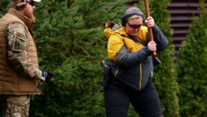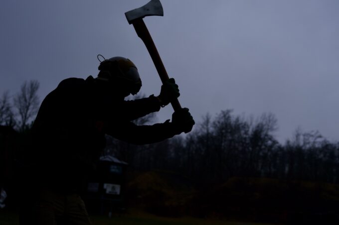 Siódmy tor rozpoczynano serią 20 uderzeń siekierą w drewniany pieniek, każdorazowo unosząc siekierę ponad głowę. Kluczową rolę odegrały znajdujące się na torze dwa drzewa. Po zakończeniu rąbania drewna podbiegano do pierwszego z nich i wykorzystując je jako osłonę strzelano z karabinu najpierw z jego lewej a następnie prawej strony. Przemieszczając się następnie do drugiego drzewa, zawodnik powtarzał te czynności. Ostatnim zadaniem w ramach tego toru było powtórzenie tej samej sekwencji, tym razem z pistoletem.