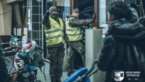Żołnierze WOT rejestrują uchodźców, wydają ciepłe posiłki, kanapki i herbatę, kierują ruchem, zapewniają transport do miejsc czasowego pobytu, na dworcach pomagają w przemieszczaniu się osobom starszym i niepełnosprawnym oraz wykonują wiele innych czynności zabezpieczających przyjęcie ofiar rosyjskiej napaści na Ukrainę. Żołnierze WOT są we wszystkich punktach recepcyjnych na ścianie wschodniej.