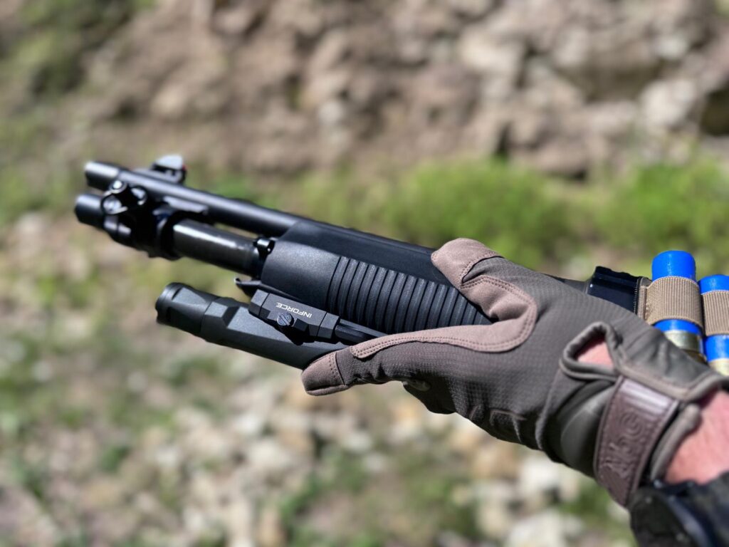 A jak Inforce WMLx spisywała się w trybie pump action? Wnioski są bardzo podobne jak z pracy trybie semi. Żadnych utrudnień oraz niewygody. Co więcej, WMLx zamontowana w ten sposób stanowi de facto oparcie dla dłoni, umożliwiając pewniejsze ruchy czółenkiem strzelby.