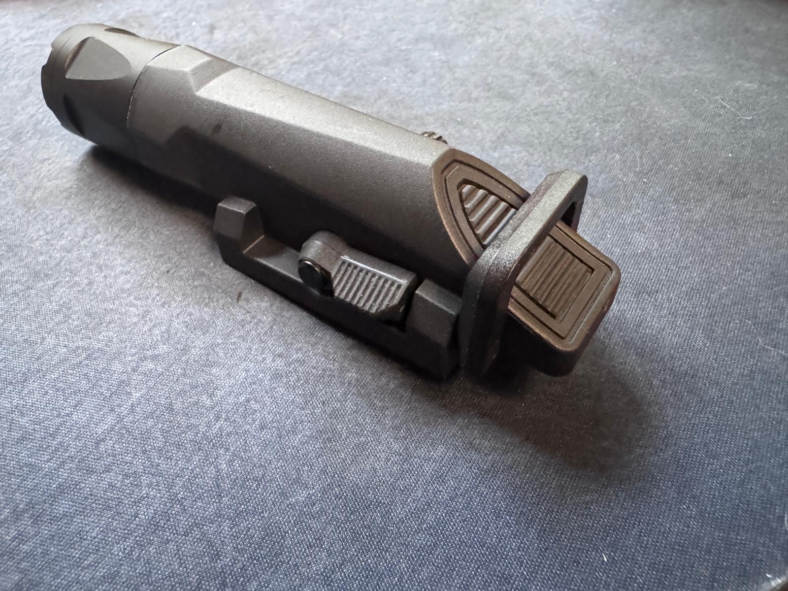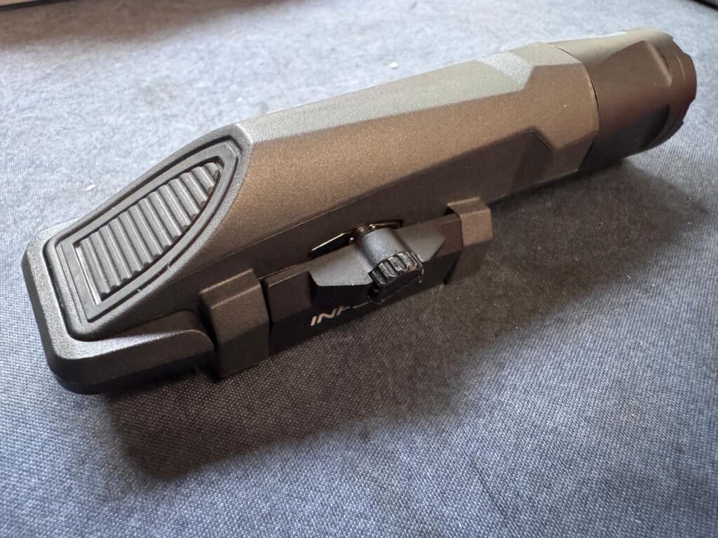 Treningu zapewne będzie wymagać również uruchomienie lub dezaktywacja dźwigni blokady włącznika — choć to może się okazać intuicyjne, gdyż jest ona dosyć wyczuwalna po najechaniu na nią kciukiem. Proces być może nieco utrudniony, gdy operujemy bronią w rękawicach, zwłaszcza nieco grubszych. Wydaje się jednak, że częstotliwość stosowania blokady może być niewielka, gdyż przycisk włącznika nie wystaje poza obrys latarki i jest dosyć twardy – toteż, szanse na przypadkowe włączenie światła są niewielkie.