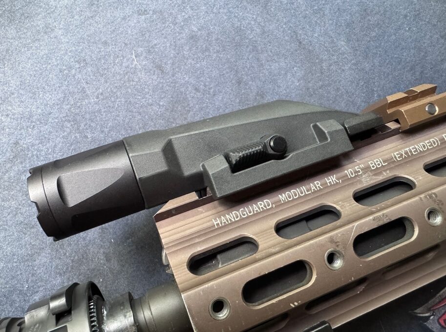 Pierwsze pytanie po montażu oświetlenia na H&K MR 223, na które postanowiliśmy znaleźć odpowiedź, to możliwości optymalnego montażu latarki dla strzelca prawo lub leworęcznego. W przypadku karabinka, logicznymi wydają się trzy opcje montażu na łożu – na 12, 9 i 3 godzinie.